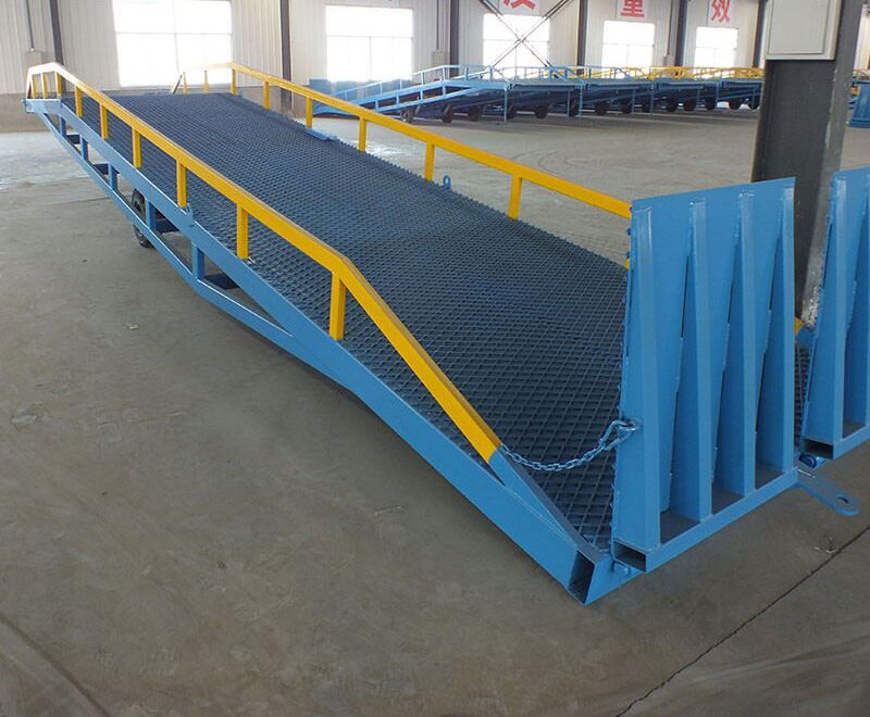 翻譯:移動(dòng)式登車橋廣泛用于無裝卸設(shè)備的貨臺(tái)及流動(dòng)裝卸場(chǎng)所,是與叉車配合使用的貨物裝卸輔助設(shè)備