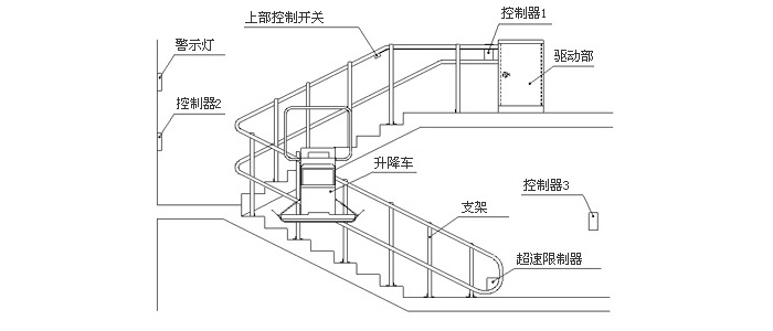 斜掛式輪椅升降機(jī),一種安裝在樓道系統(tǒng)利用電機(jī)牽引沿著軌道上下移動(dòng)并運(yùn)載乘客的無(wú)障礙安全裝置。它由驅(qū)動(dòng)系統(tǒng)、導(dǎo)軌、繩輪鏈、移動(dòng)平臺(tái)等組成。用于建筑樓道系統(tǒng)中,乘坐輪椅或爬樓梯困難的人員攀爬樓梯的專用設(shè)備。主要由主驅(qū)動(dòng)系統(tǒng),輔助驅(qū)動(dòng)系統(tǒng)、主控系統(tǒng)和安全系統(tǒng)組成。