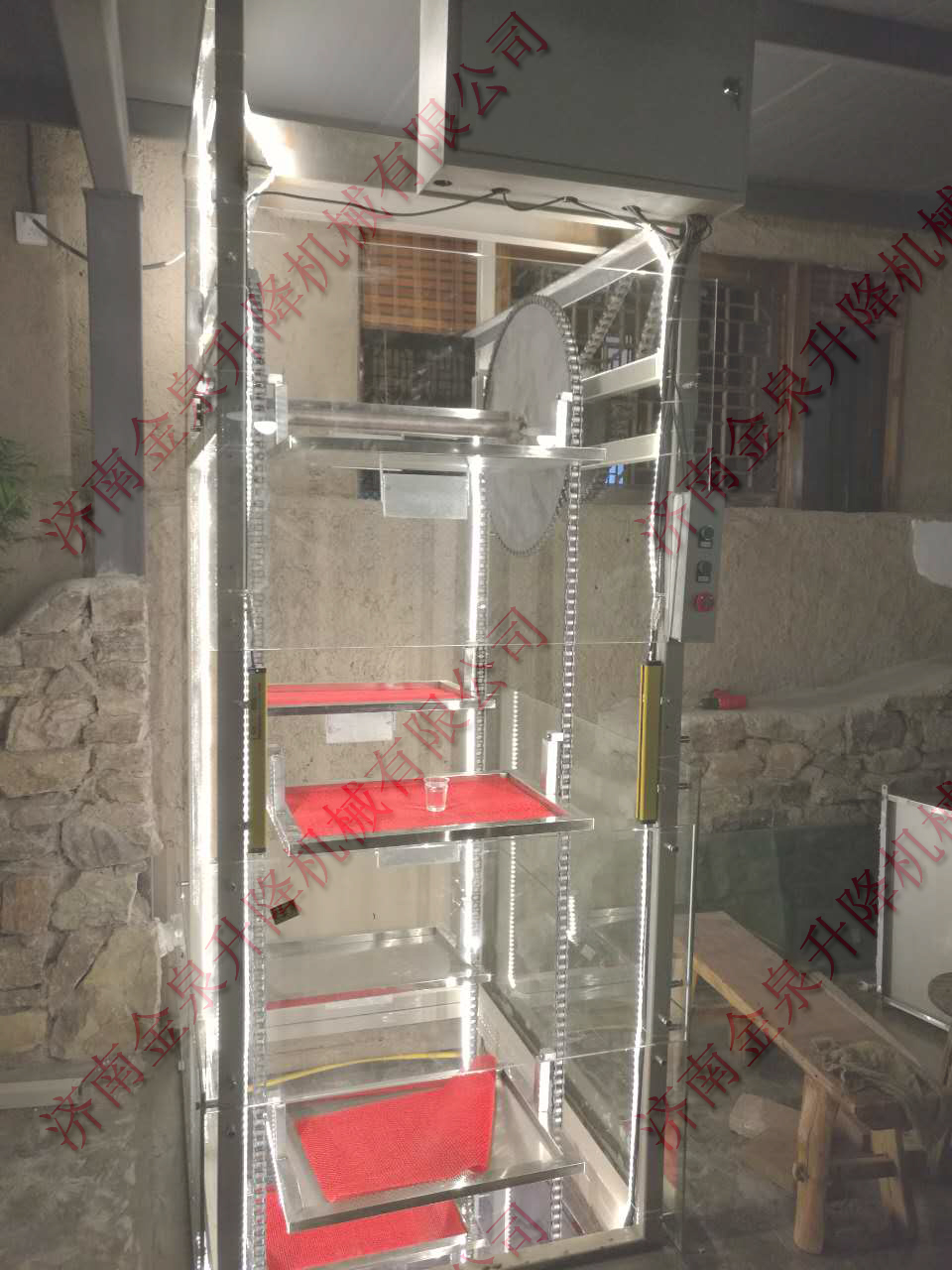 2.垂直液壓提升機(jī):采用液壓做為驅(qū)動(dòng),速度比雜物電梯稍慢