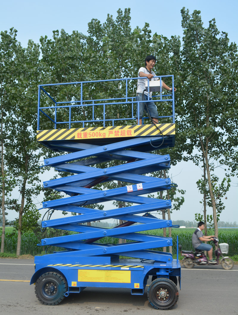 SJYZ系列自行式液壓升降平臺(tái)的主要特點(diǎn)是:使用人員可以不用下升降臺(tái)就可控制機(jī)械升降、行走,可在臺(tái)面上控制設(shè)備行駛到其他的工作地點(diǎn)。設(shè)備自身具有行走及轉(zhuǎn)向驅(qū)動(dòng)功能,不需人工牽引,不需外接電源。移動(dòng)靈活方便,令高空作業(yè)更方便快捷,是現(xiàn)代企業(yè)高效安全生產(chǎn)之 理想高空作業(yè)設(shè)備。