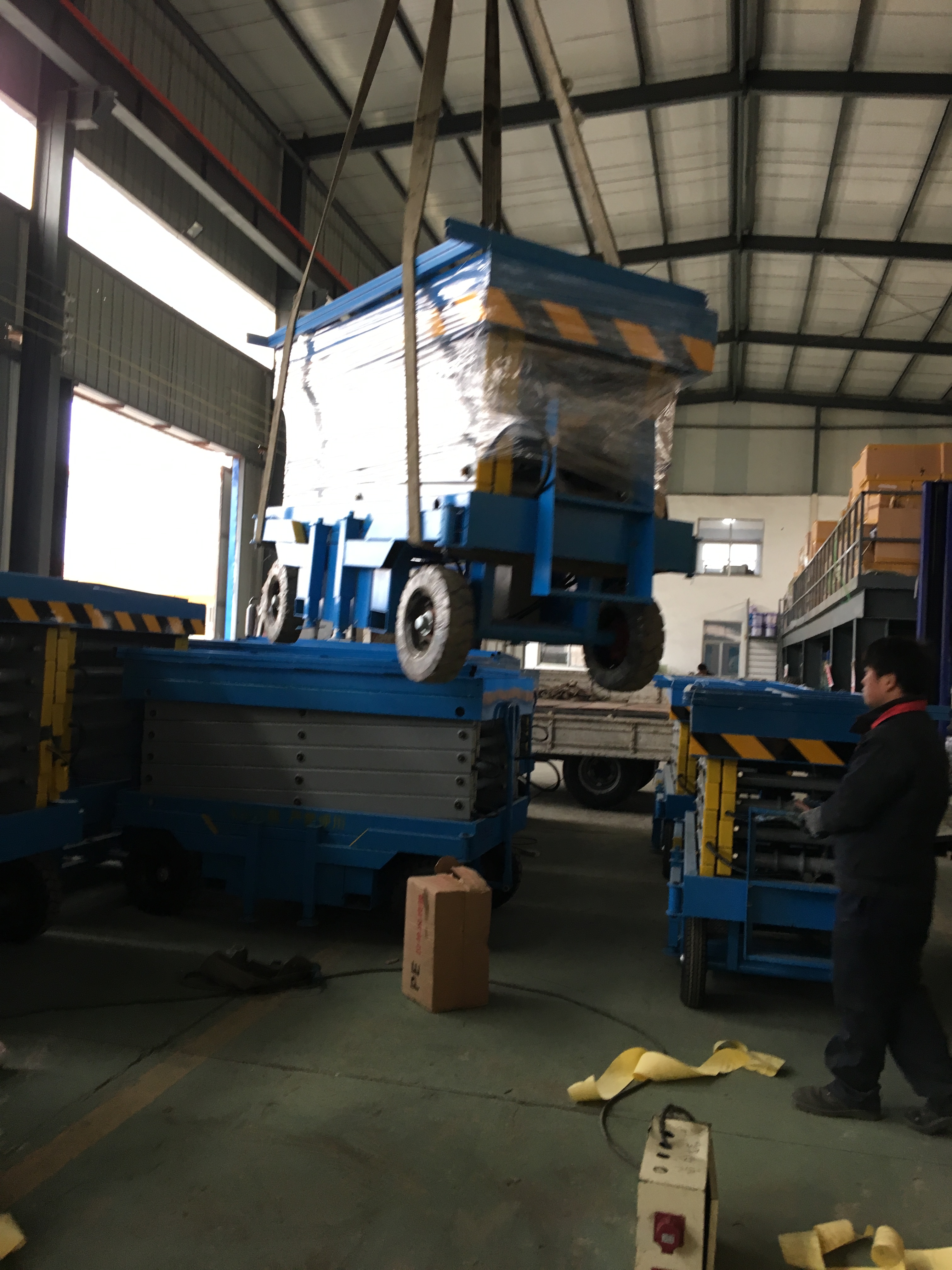 2017年第一臺移動升降機發(fā)走,客戶訂購8米實心輪胎帶遙控器380v動力單元的移動剪叉升降機!訂購熱線15662757281