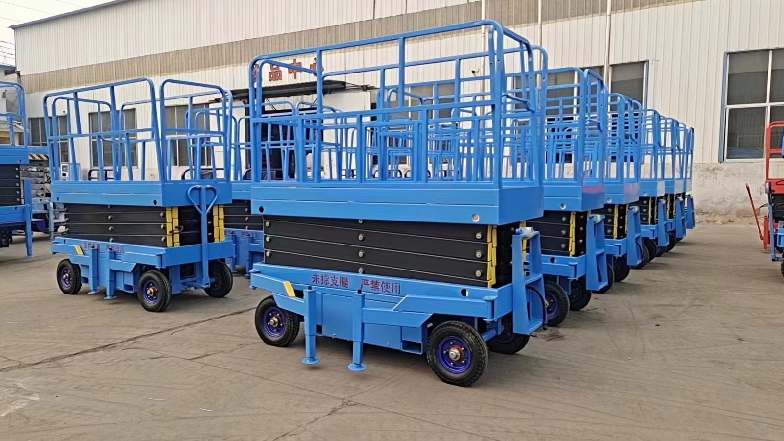 移動升降機(jī)根據(jù)需求可選為手動、二相、三相、電瓶、柴油機(jī)為升降動力,特殊場所也可選用防爆電器等。該升降機(jī)控制方式為電動上、下控制升降,手、電兩用或遙控器控制,在停電時(shí)仍可使用。該系列升降機(jī)具有移動靈活,升降平穩(wěn),載重量大,操作方便等特點(diǎn),移動升降機(jī)廣泛用于工廠、糧庫、機(jī)場、加油站、機(jī)關(guān)、碼頭、野外電力、路燈維護(hù)及建筑裝修等各種行業(yè)。移動升降機(jī)可根據(jù)用戶使用要求設(shè)計(jì)制造。    四輪移動式升降機(jī):  該機(jī)系列平臺為人工移動式,有四個(gè)輪子作為移動,簡便且平穩(wěn)。平臺各降動力為二相,三相或直流24V,36V電源,也可改為些油機(jī)作動力,控制方式有手動控制和電動控制,另可加根據(jù)需要加配手壓泵和手動下降裝置,在停電時(shí)仍可正常使用。