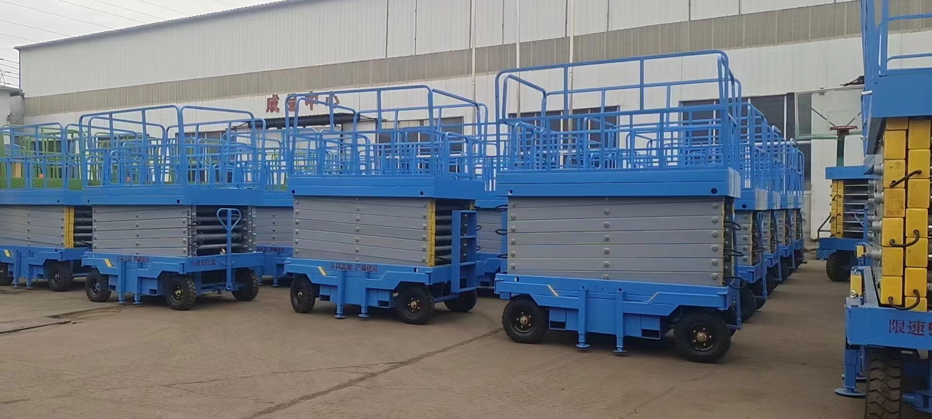 用防爆電器等。該升降機(jī)控制方式為電動上、下控制升降,手、電兩用或遙控器控制,在停電時仍可使用。該系列升降機(jī)具有移動靈活,升降平穩(wěn),載重量大,操作方便等特點(diǎn),移動升降機(jī)廣泛用于工廠、糧庫、機(jī)場、加油站、機(jī)關(guān)、碼頭、野外電力、路燈維護(hù)及建筑裝修等各種行業(yè)。移動升降機(jī)可根據(jù)用戶使用要求設(shè)計制造。    四輪移動式升降機(jī):  該機(jī)系列平臺為人工移動式,有四個輪子作為移動,簡便且平穩(wěn)。平臺各降動力為二相,三相或直流24V,36V電源,也可改為些油機(jī)作動力,控制方式有手動控制和電動控制,另可加根據(jù)需要加配手壓泵和手動下降裝置,在停電時仍可正常使用。