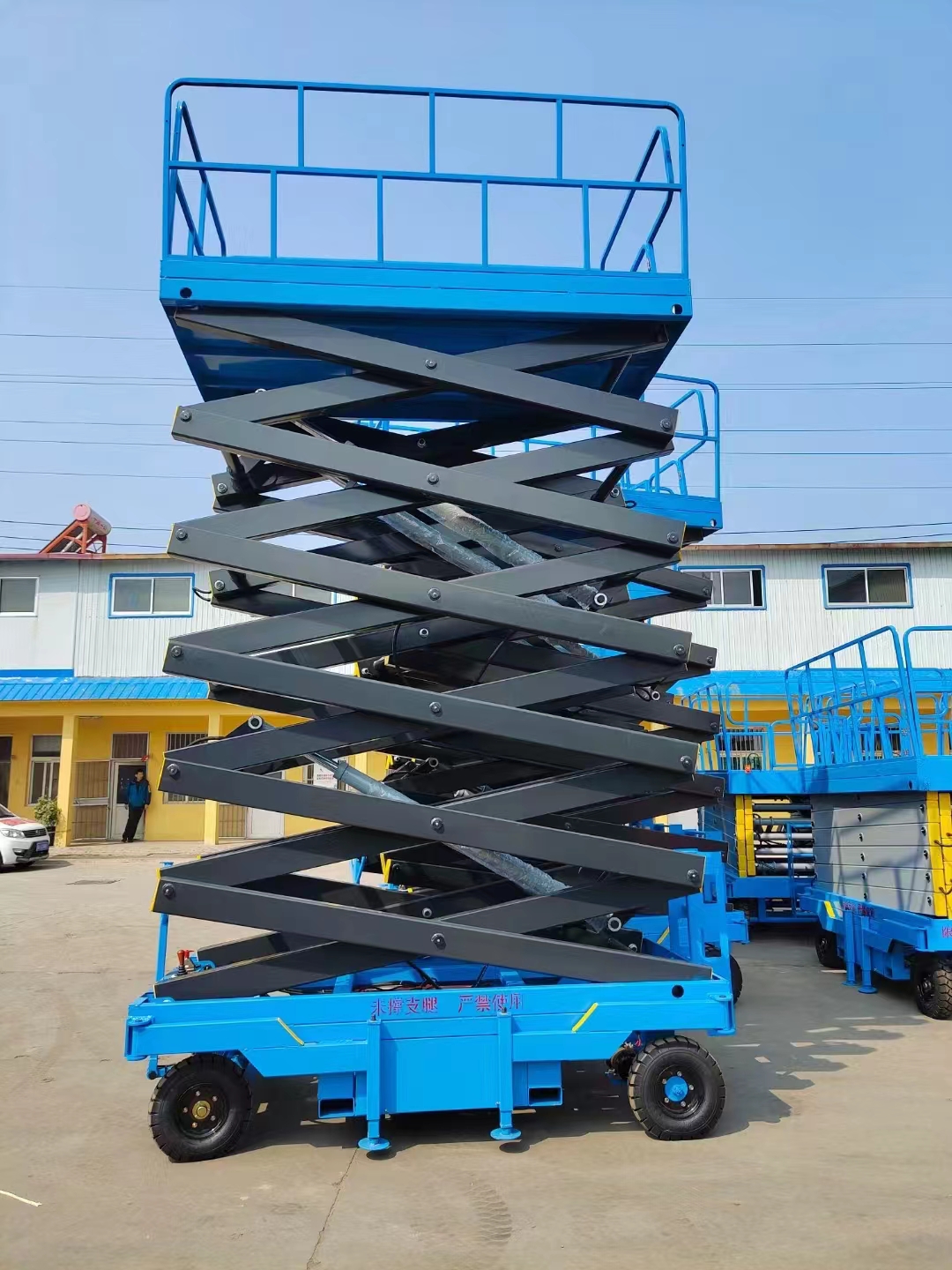 用防爆電器等。該升降機(jī)控制方式為電動(dòng)上、下控制升降,手、電兩用或遙控器控制,在停電時(shí)仍可使用。該系列升降機(jī)具有移動(dòng)靈活,升降平穩(wěn),載重量大,操作方便等特點(diǎn),移動(dòng)升降機(jī)廣泛用于工廠、糧庫、機(jī)場、加油站、機(jī)關(guān)、碼頭、野外電力、路燈維護(hù)及建筑裝修等各種行業(yè)。移動(dòng)升降機(jī)可根據(jù)用戶使用要求設(shè)計(jì)制造。