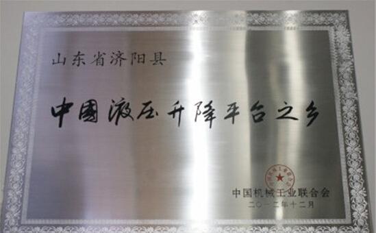 2012年12月14日,中國(guó)機(jī)械工業(yè)聯(lián)合會(huì)授予濟(jì)陽(yáng)縣“中國(guó)液壓升降平臺(tái)之鄉(xiāng)”稱(chēng)號(hào)。